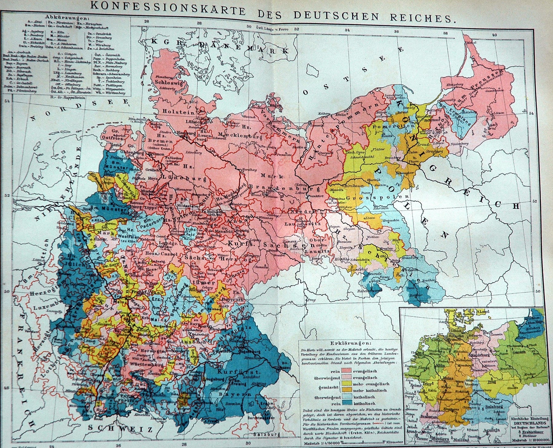 Map of Holy Roman Empire dated 1648 with these early Koberstein families locations marked with the earlies record for each. Map of religions in Holy Roman Empire.