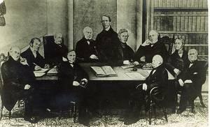 Pictured here (from left to right) are: Henry Drummond, John Tudor, Henry King-Church, Henry Dalton, Francis Sitwell, William Dow, Thomas Carlyle, Francis Woodhouse (at rear), John Cardale (in front), Spencer Perceval, and Nicholas Armstrong. Duncan Mackenzie is missing. Over the course of the years these prayer and Bible groups developed into an apostolic movement, which was later called the Catholic Apostolic Church. Its distinguishing feature was thatas of 1832it was led by apostles who had been called to ministry by prophets, and that it emphasised the activity of the Holy Spirit as the focal point of church life. The Catholic Apostolic congregation sought to unite all of Christendom under the spiritual leadership of these newly called apostles. To this end, the apostles addressed a Testimony of their faith to the spiritual and secular leaders of the time. However, their efforts met with very little positive response. As a result, the Catholic Apostolic congregation was compelled to develop its own church structure, with its own conception of ministry and its own liturgy, parallel to its pursuit of ecumenical endeavours. In 1863, the Hamburg schism occurred as a result of differences of opinion on a number of individual interpretations of the Holy Scripture and on the calling of new apostles. This in turn led to the establishment of what was then known as the General Christian Apostolic Mission. This schism marked the birth of the New Apostolic Church. Introduction of the chief apostle ministry The ministry of chief apostlea sole, principal leader of all congregationswas instituted on Pentecost 1897. Since then, the following individuals have carried the ministry of chief apostle in the New Apostolic Church: Friedrich Krebs (1897 - 1905) Hermann Niehaus (1905 - 1930) Johann Gottfried Bischoff (1930 - 1960) Walter Schmidt (1960 - 1975) Ernst Streckeisen (1975 - 1978) Hans Urwyler (1978 - 1988) Richard Fehr (1988 - 2005) Wilhelm Leber (since 2005) In 1917, Chief Apostle Hermann Niehaus introduced a reform in Communion liturgy: previously, Holy Communion had been celebrated using the separate commodities of bread and wine, but since then, wafers sprinkled with three drops of wine have been used during the celebration of Holy Communion. On Christmas 1951, Chief Apostle Johann Gottfried Bischoff proclaimed that Jesus Christ would return during his lifetime. Within the Church, this proclamation became known as the message. The chief apostle made this proclamation on the basis of a direct, personal revelation, which made it binding for faith and endowed it with special authority. Global growth Chief Apostle Walter Schmidt propelled the global development of the Church at a more rapid pace. While the New Apostolic Church had maintained a rather quiet, withdrawn presence in a type of societal niche for a long time, the Swiss Chief Apostles Ernst Streckeisen, Hans Urwyler, and Richard Fehr opened up the Church significantly, with the aim of taking on an active role in public life as an integral component of society. The vigorous growth of the Church around the world and the integration of numerous different cultures and traditions into a uniform doctrine of faith are significant challenges in the third millennium. The focus of the New Apostolic doctrine of faith remains the expectation of the imminent return of the Son of God, Jesus Christ. |