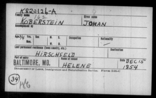 | Johan Koberstein (2) | - | - | Male | - | Bremen, Germany | Hirschfeld | Helene |