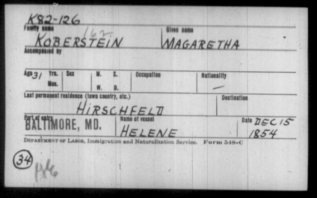 | Sisie Kuperstein | Jun-11 | 1873 | Female | Bremen, Germany | Russia | Cassel |