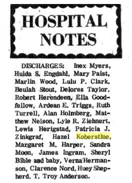 And lastly in the May 2, 1974 article we see Hazel Koberstine being discharged from the hospital.