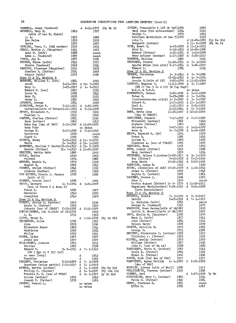 Age: 87 ; Infant: ; Veteran: N ; Ashes: