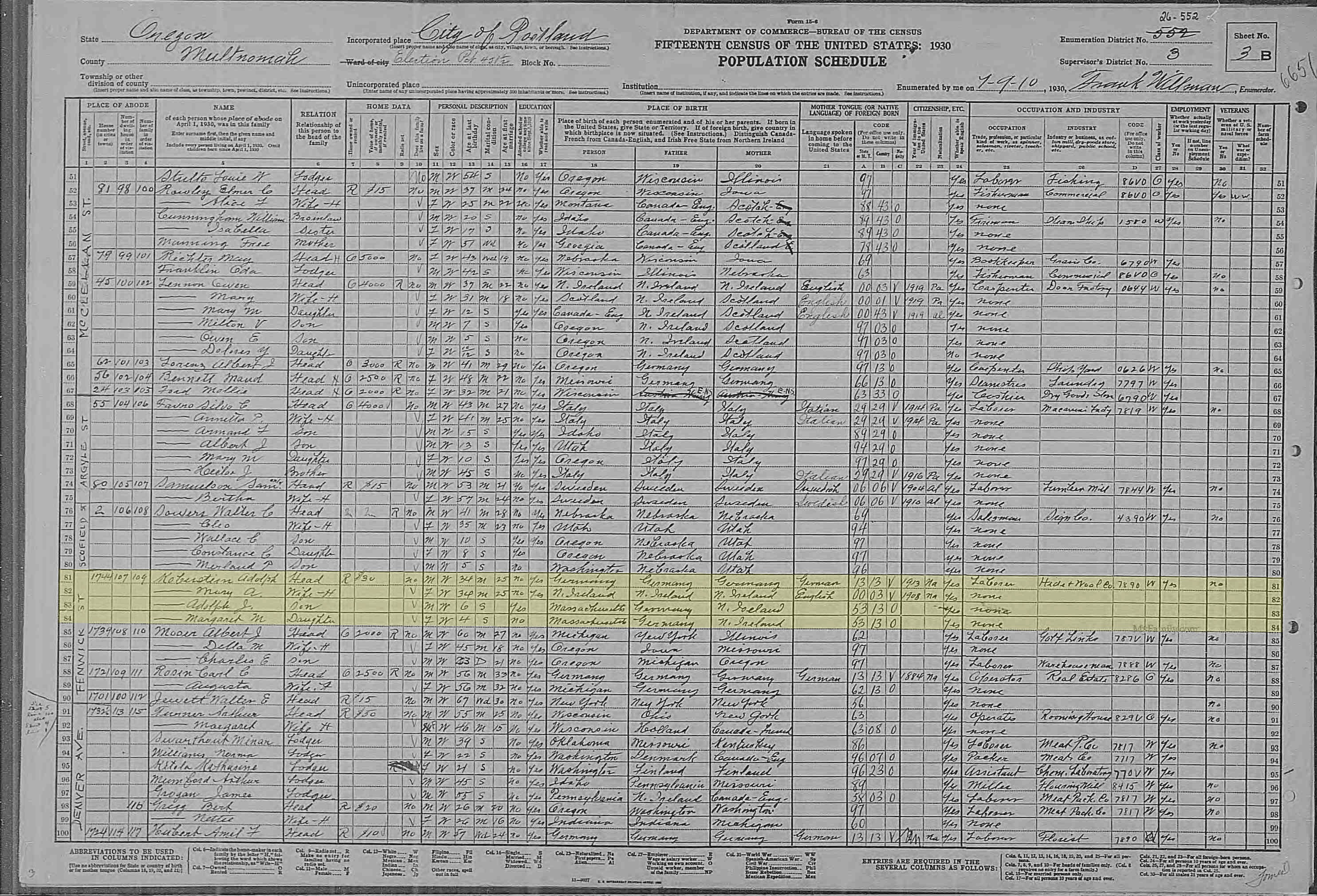 Adolph, Mary, Adolph, and Margaret are listed on lines 81-84.