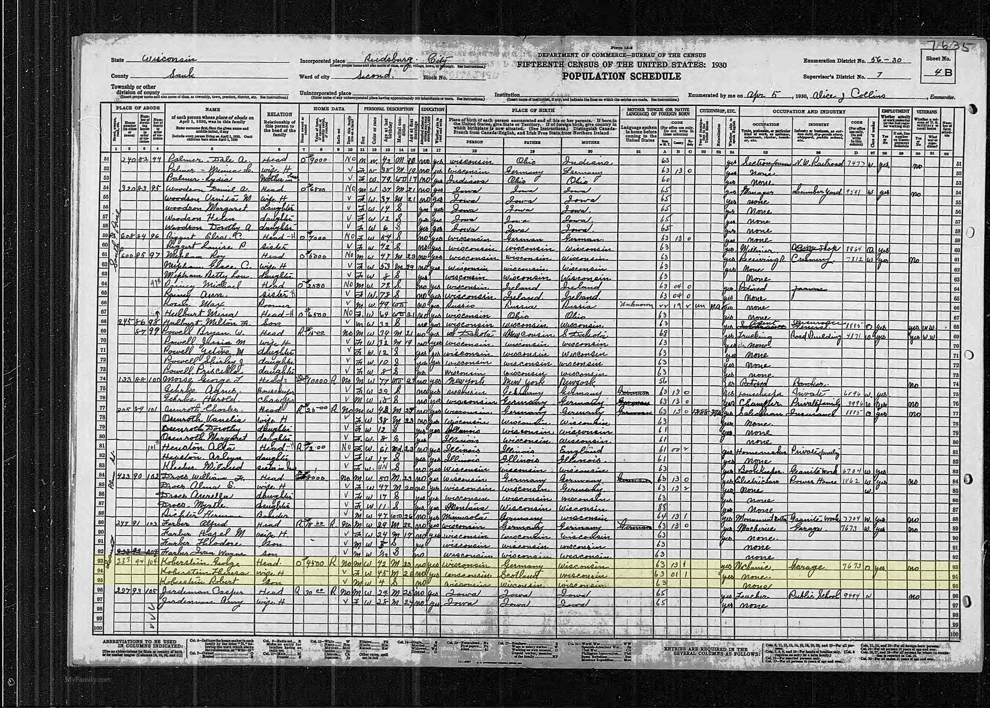 George, Therese and Robert are listed on lines 93-95.