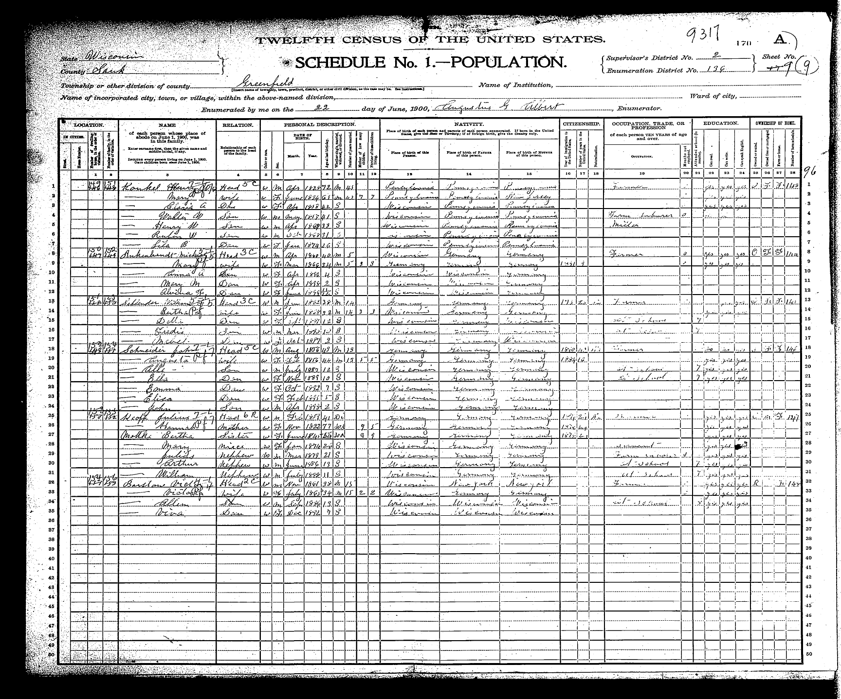 William, Bertha, Dotti, Fredie, and Mabel are listed on lines 13-17.