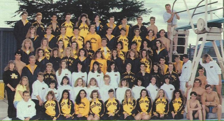 Flages, middle row first on right. Jazz Band (bottom 2nd from left) flag team, fifth row first on left Swim and dive team, bottom row 6th from left. |