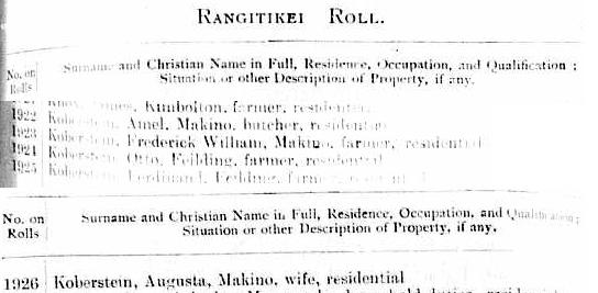 All New Zealand, Electoral Rolls, 1900 results for Koberstein
