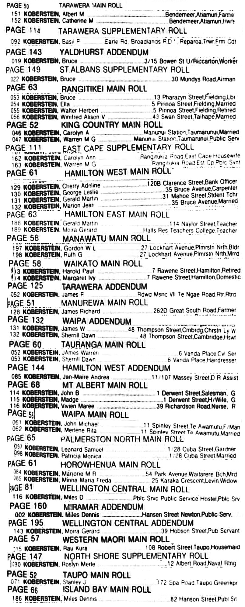 All New Zealand, Electoral Rolls, 1978 results for Koberstein