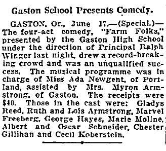 Gaston School Play Success (News Article)
