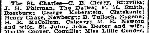 George Koberstein listed as guest at St. Charles Hotel