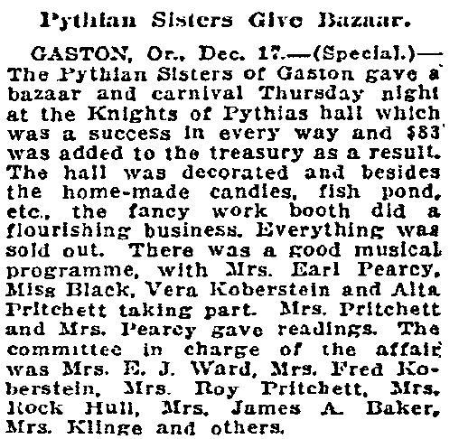 Pythian Sisters Give Bazaar (News Article)