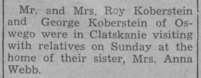 | June 22, 1987 | Oregonian | D15,C1 | Obituaries | Koberstein, Clara Mary, age 87 | 289046 | - | |