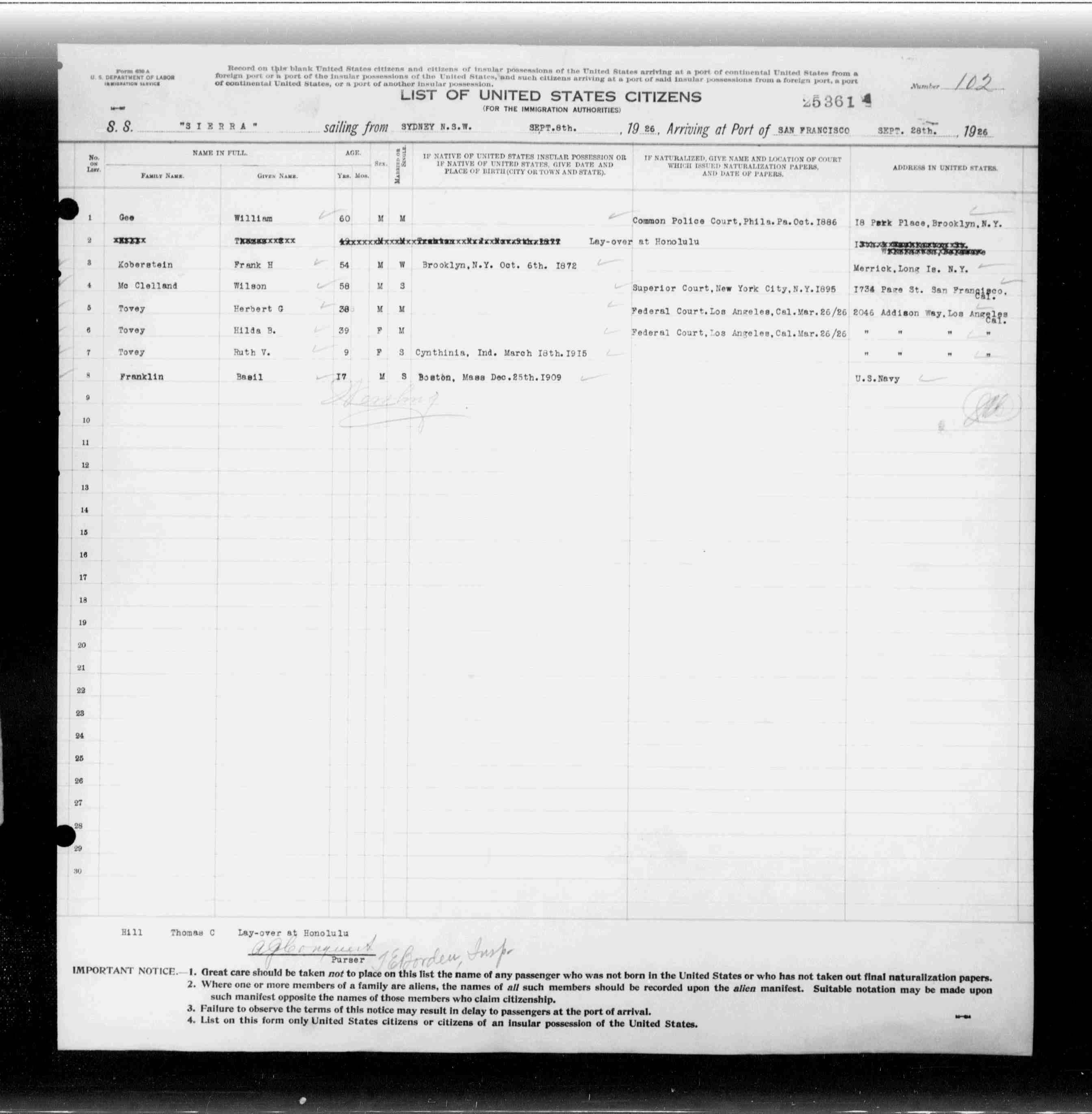 | Arrival Date: | Sep 1926 |