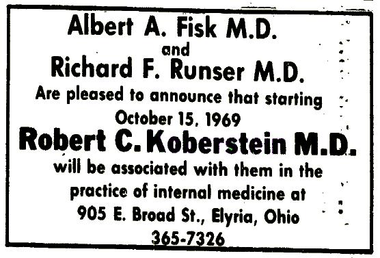From the Chronicle Telegram date October 29, 1969 at Elyria, Ohio (another newspaper article on Dr. Robert C. Koberstein)