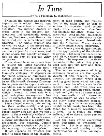 Mr. Koberstein came to Oberlin in 1946 (age about 32) from the University of Minnesota where he had been instructor in music. He had also done private teaching and had made solo appearances with the Minneapolis Symphony Orchestra and, while serving in the army, with the Orchestra de la Chapella de la Reine in Belgium and with the Staatsopper orchestra in Germany. Mr. Koberstein studied with Madame Olga Samaroff-Stokowaki at Julliard and with Dimitri Mitropoulos at the University of Minnesota.