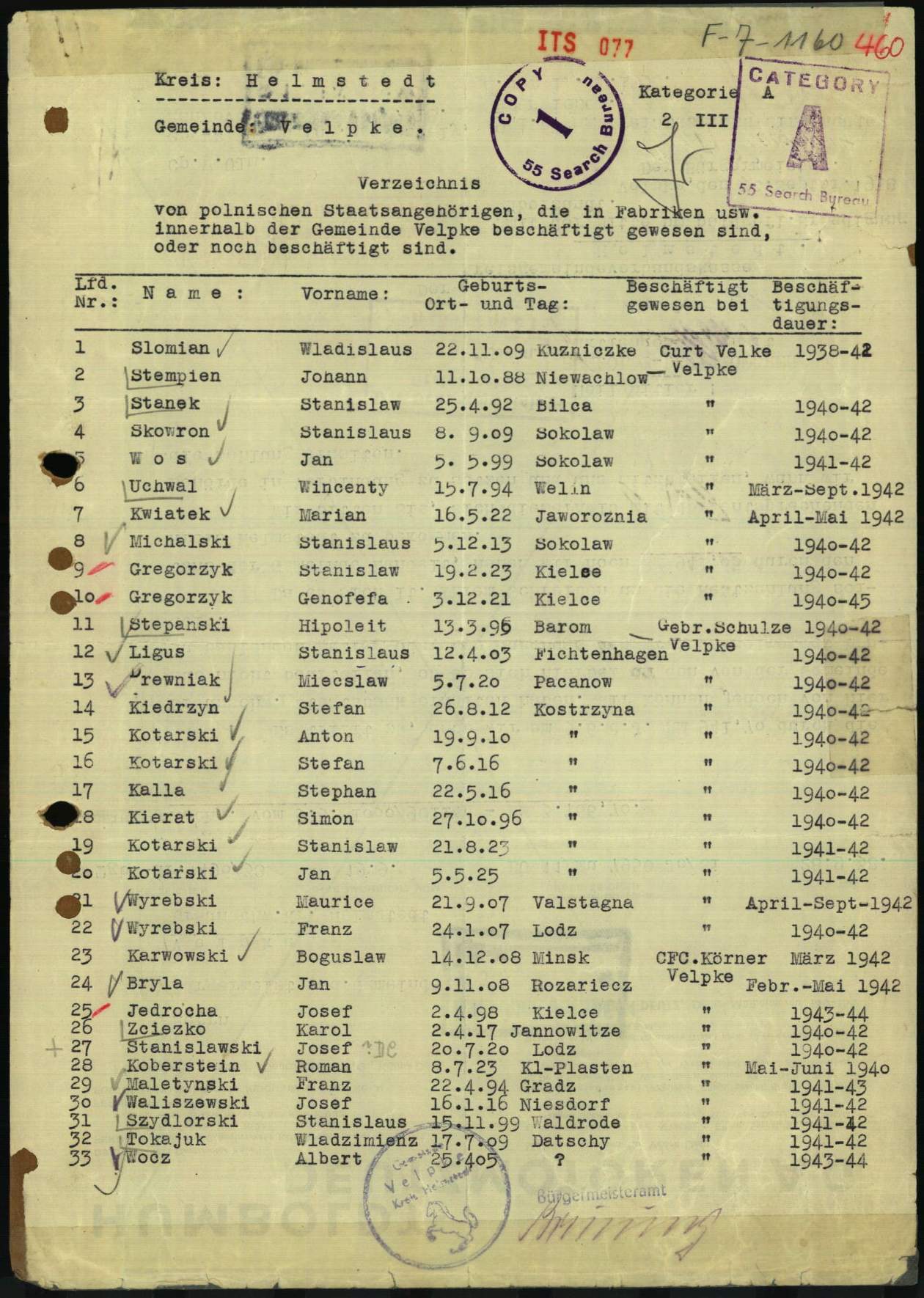 | Lfd. Nr.: | Name | First name | Birth Date | Birth City | Been employed at | Duration of employment: |