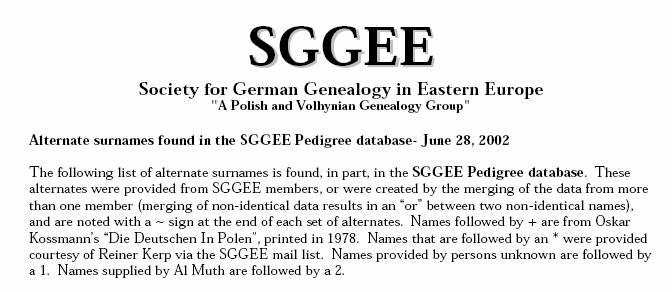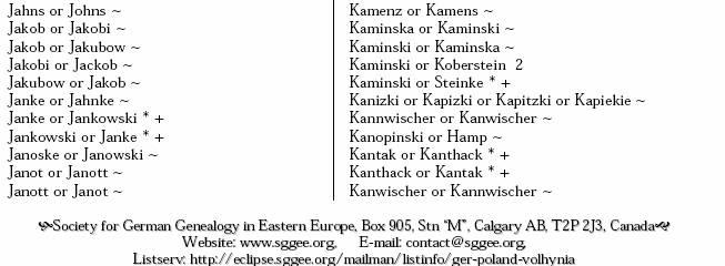 You can see the document quoted below at http://www.sggee.org/AlternateSurnamesDatabase.pdf