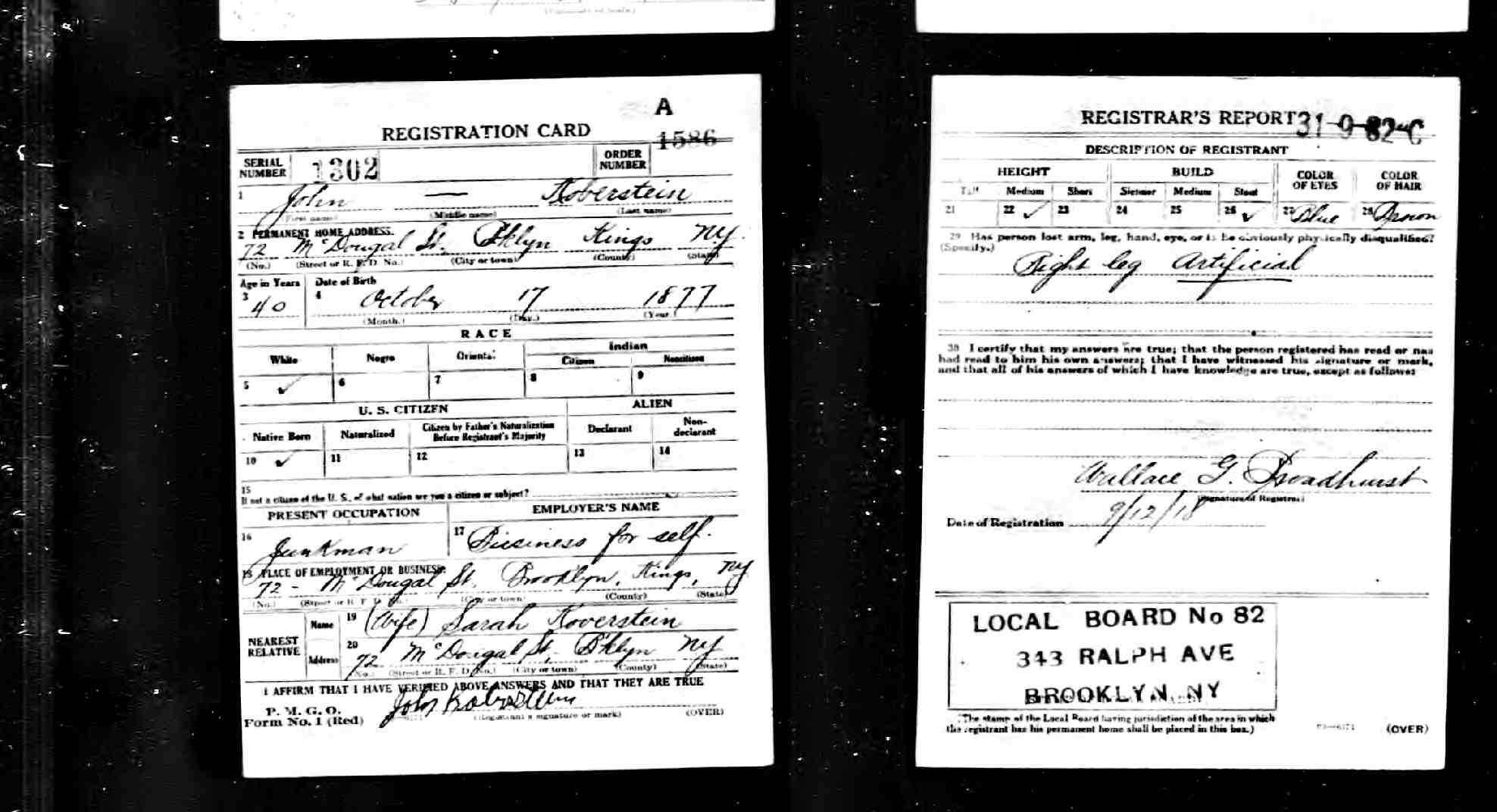 35 F i Josephine KOBERSTEIN was born 1886 in New York. 36 M ii Charles Joseph KOBERSTEIN [image] was born 12 Dec 1888 in New York, New York.[Notes] 37 M iii Gustav M. KOBERSTEIN [image] was born 27 Sep 1890 1 in Brooklyn, Kings, New York 1. He died 2 19 Mar 1957 in New York and was buried 22 Mar 1957 3 in New York, New York 3.[Notes] Gustav married Margaret J. 1. Margaret was born 1 22 Feb 1890. She died 1 28 Nov 1973 and was buried 1 3 Dec 1973.[Notes] + 38 F iv Marie A. KOBERSTEIN was born 1892.