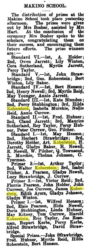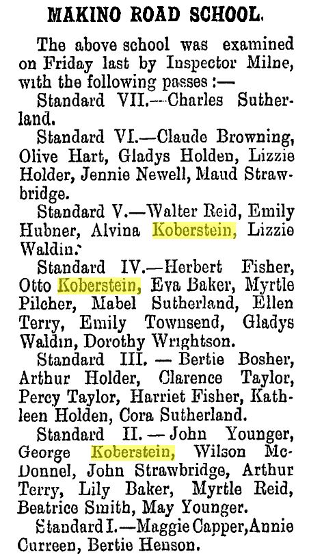Feilding, New Zealand and citys round about found Frederick Wilhelm Koberstein Sr. and his descendents mentioned frequently in the local newspaper.