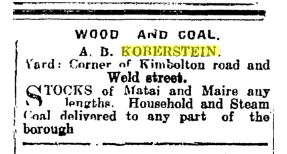 Stocks of Matai and Maire any lengths. Household and Steam Coal delivered to any part of the borough.