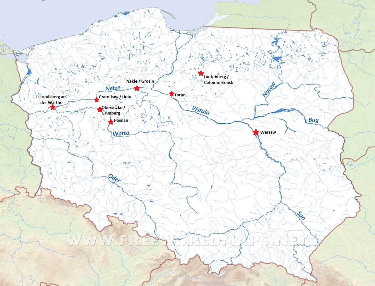 Landsburg (Gorzow Wielkopolski) Schurow (August Hermann Ewald) Rugenwalde (Karl August) Zachodniopomorskie (West Pomeranian) Czarnikow (Matys Koberstein) FS Alt Hutte (Christoph Koberstein) FS Possible wife of Christioph Grunberg (Caroline Koberstein nee Hoffmann) Johann Jokert Gorsin (Caroline Koberstein nee Kopiske) Friedheim (Justine Koberstein nee Warnke) Radwonke/Kolmar (Johanne Wilhelmine Koberstein nee Koenig) Wielkopolskie (Greater Poland) 2 Leszno |