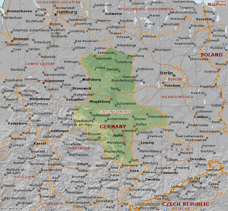 Modern map of Saxony-Anhalt, Germany