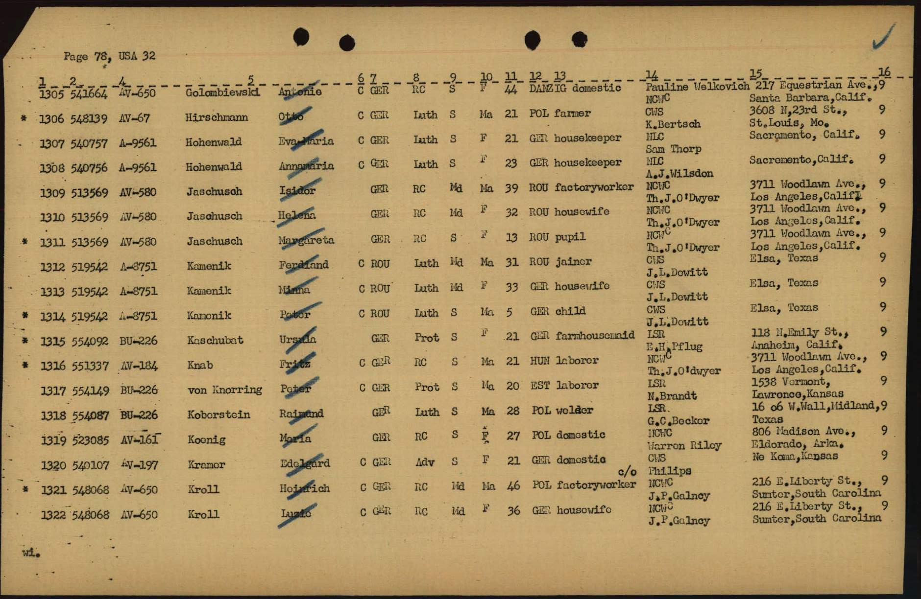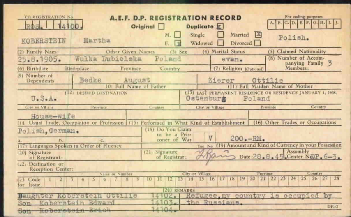 | KOBERSTEIN | Martha | Wulka Lubielska, Poland | 08/25/1905 | " | ||
