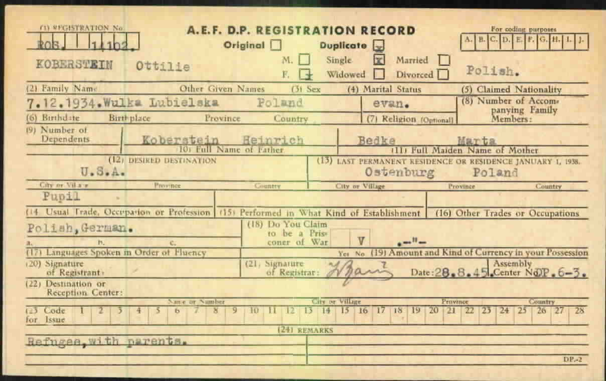 | KOBERSTEIN | Ottilie | Wulka Lubielska, Poland | 12/07/1934 | " | ||