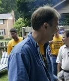 Alex Kobersteen, 4, plays as his father, Joel Kobersteen, talks with Jill Young at a gathering of firefighters and their families in Fairfax County. In Va., Picnics and Politics Kerry Gatherings Aim to Invigorate Grass Roots By Maria Glod Washington Post Staff Writer Tuesday, September 7, 2004; Page B01 When a firetruck rolls out of Station 22 in Springfield, there are usually three people aboard. Firefighter and paramedic Joel Kobersteen thinks it would be safer and smarter if there were four or five, and he thinks that could happen if John F. Kerry becomes president. But Kobersteen, 32, isn't just going to vote for the Democratic nominee, he's going to try to persuade others to do the same. ... At a picnic yesterday in Fairfax County, it didn't much matter that the front porch was actually a back deck. Politics was in the air. Kobersteen ate hamburgers, potato chips and cookies and said he thinks Kerry is the right candidate for blue-collar people. He said he's going to pass that message on to firefighters, friends and anyone else who will listen. "This is just the beginning," Kobersteen said. "I'm an educator and trying to get out the truth. My big thing is, vote educated." ... Kobersteen said that he'll keep pushing for Kerry but that he's not sure how things will turn out in November. "Different people have different values," Kobersteen said. "John Kerry doesn't reflect everyone's values. He reflects mine."