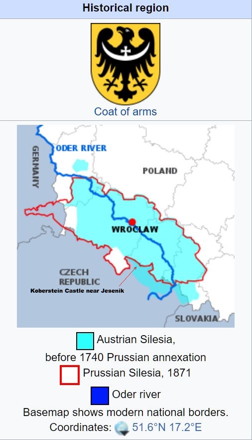 Here is a map showing the historical boundries of Silesia over a moder map (as given in Wikepedia.