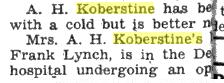 This newspaper entry for January 21, 1955 indicates that August Herman Koberstine had a cold but his wife, Almeda was in the hospital undergoing an operation.