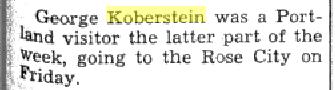 The last child not mentioned in this article is Carl "Karl" Henry KOBERSTEIN who was born 16 Dec 1899 in Oregon. He died 23 Oct 1981 in Orange county California. Perhaps he stayed in California during this visit.