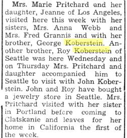 The records I have don't show any connection between John and Roy to Seattle. This article is the first connection indicating they bought a jewelry store there. However, Roy's connection to a watch shop shows he has the professional connection to jewelry.