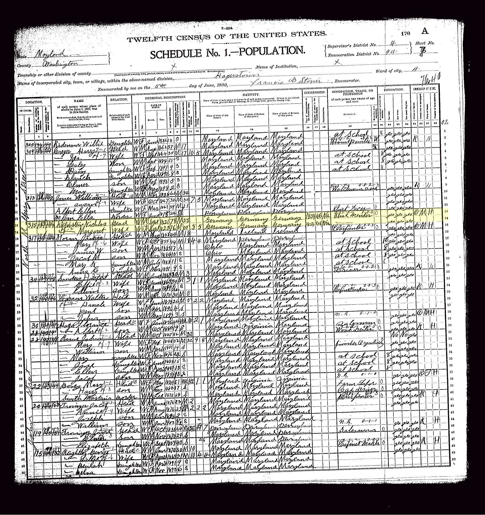 Nicholas and Margaret are listed on lines 13 and 14.