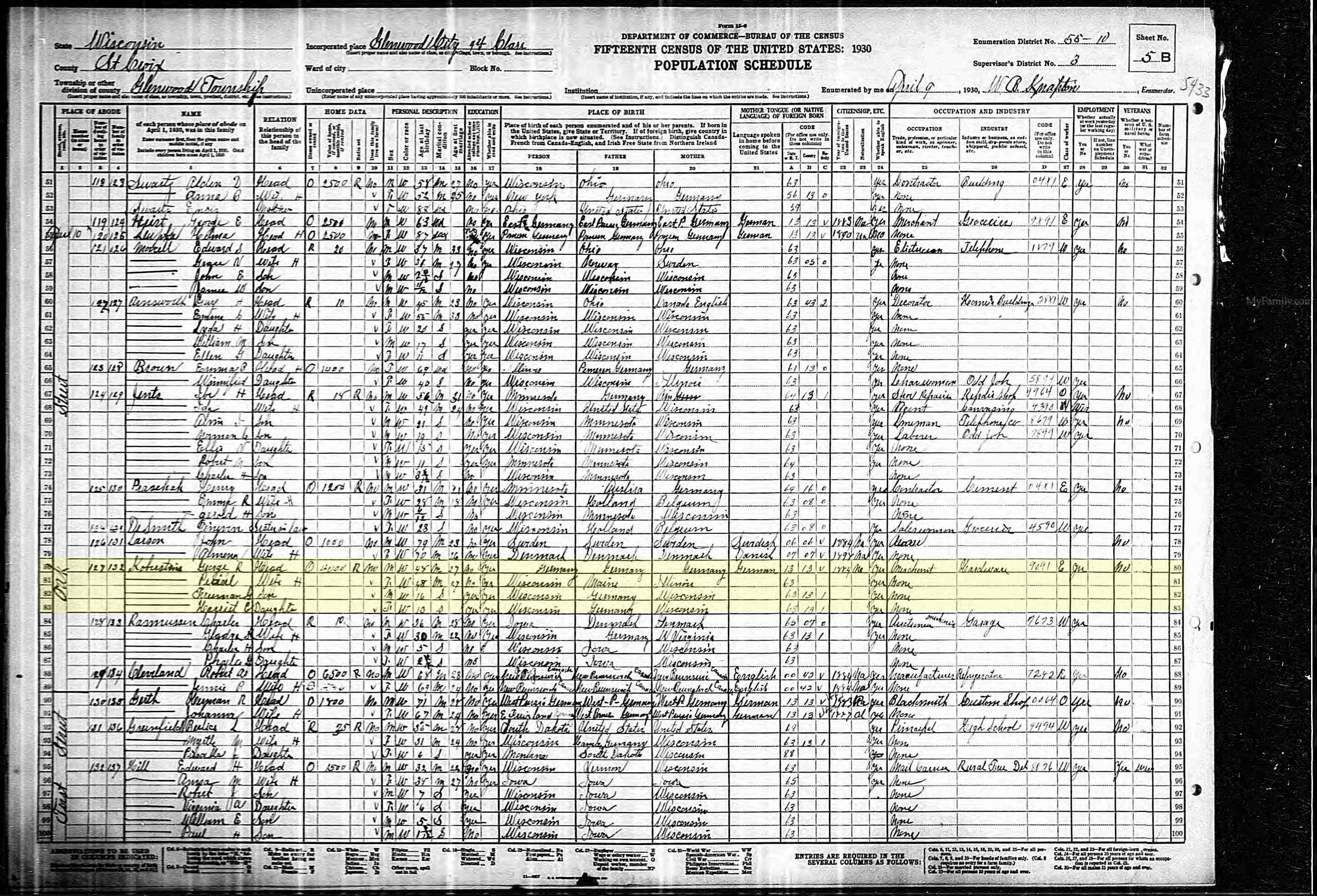 George, Pearl, Freeman, and Harriet are listed on lines 80-83.