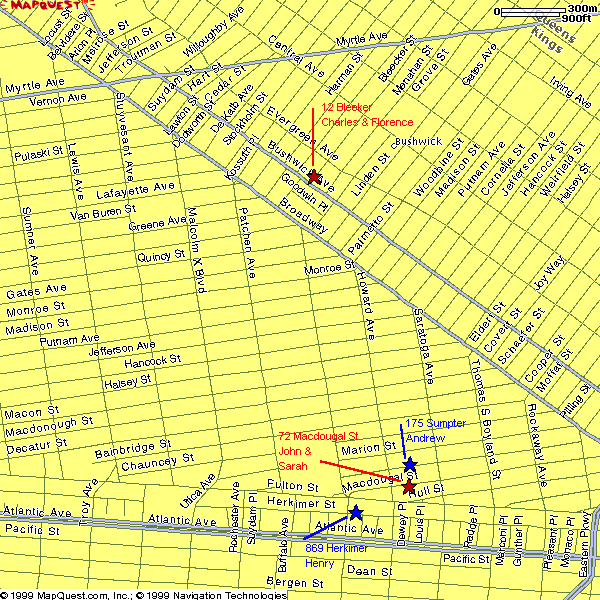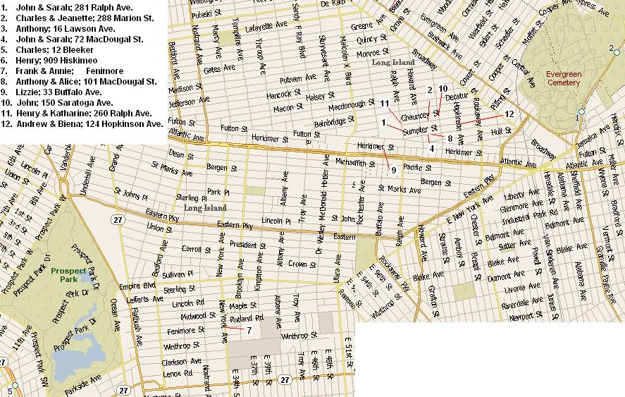 Modern map of the Kobersteins in Brooklyn, New York for the 1880-1930 census: