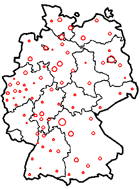 The larger circles represent about 35 households in that zip code area. The smallest circles represent 1 household. |