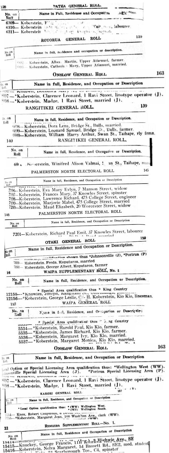 All New Zealand, Electoral Rolls, 1954 results for Koberstein