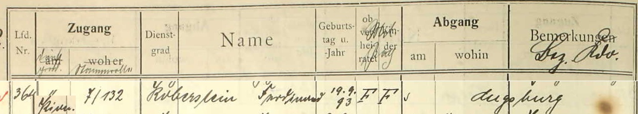 364 - " - Koberstein, Ferdinand 19 Apr 1893 F F Augusburg -