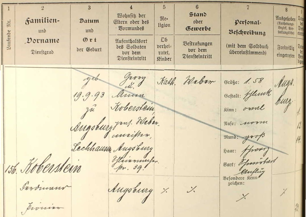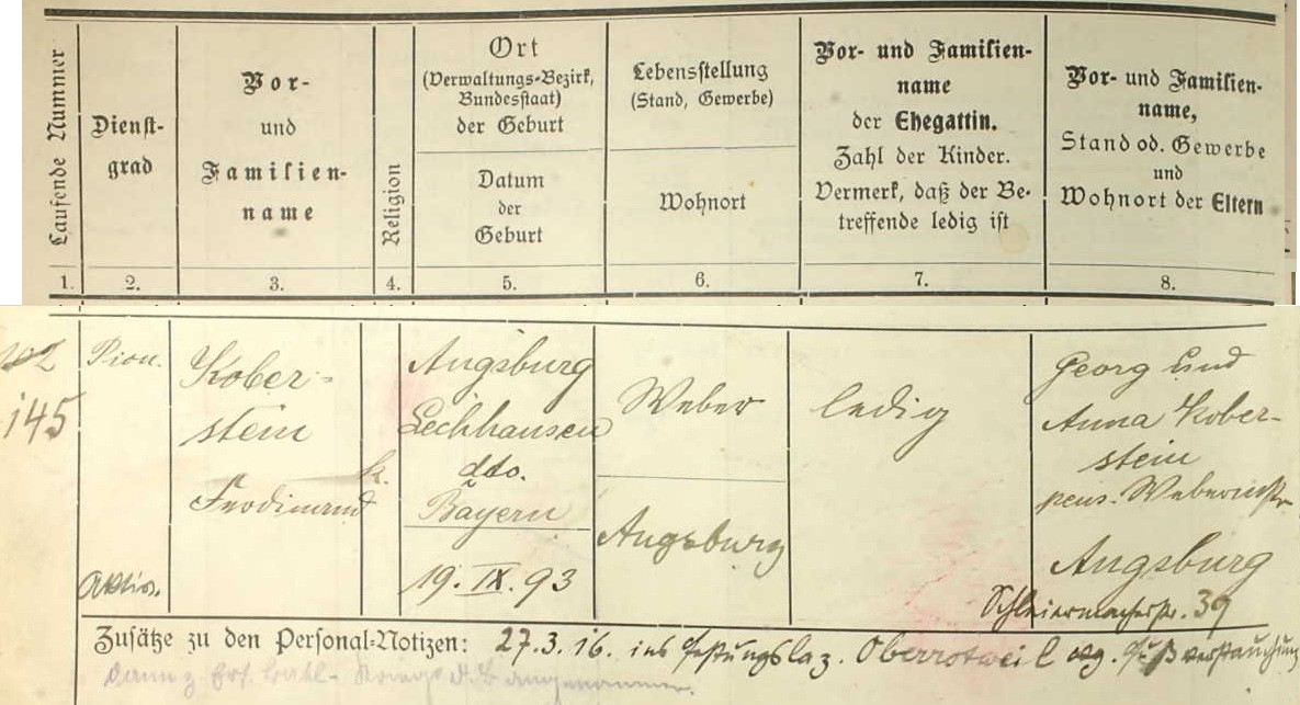 145 - 7/132 - Koberstein, Ferdinand 19 Apr 1893 F F Augsburg -