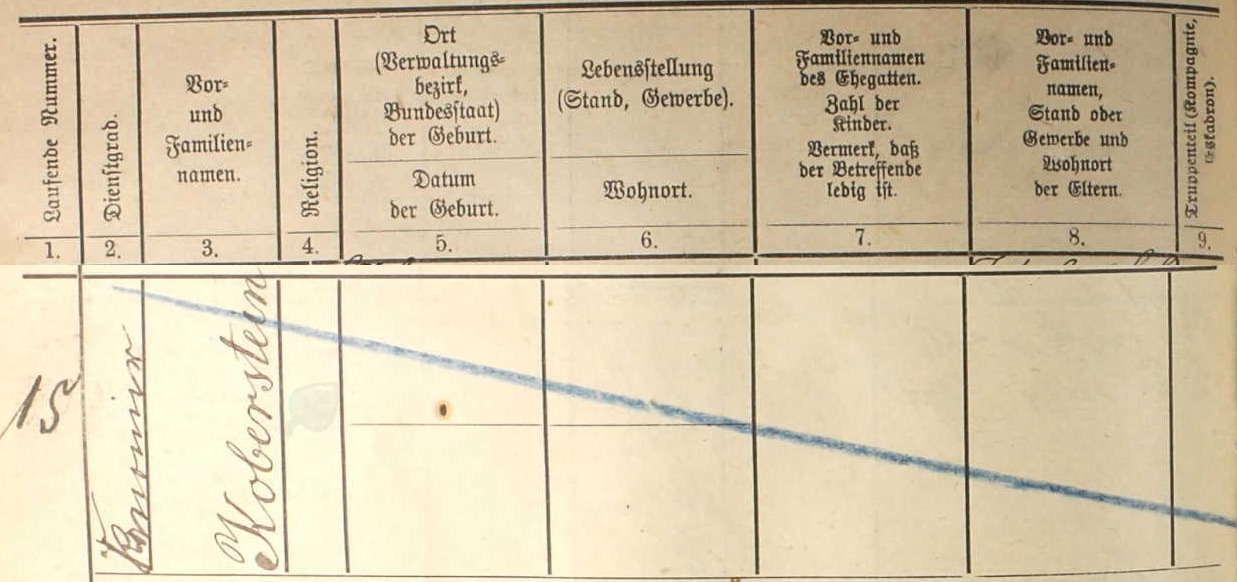 Name: Koberstein Combat Arm: Artillerie Type of Unit: Fußartillerie-Regimenter Unit: 1 bayer. Fußart. Regt (München-Neu-Ulm) Volume: 14821. Kriegsstammrolle