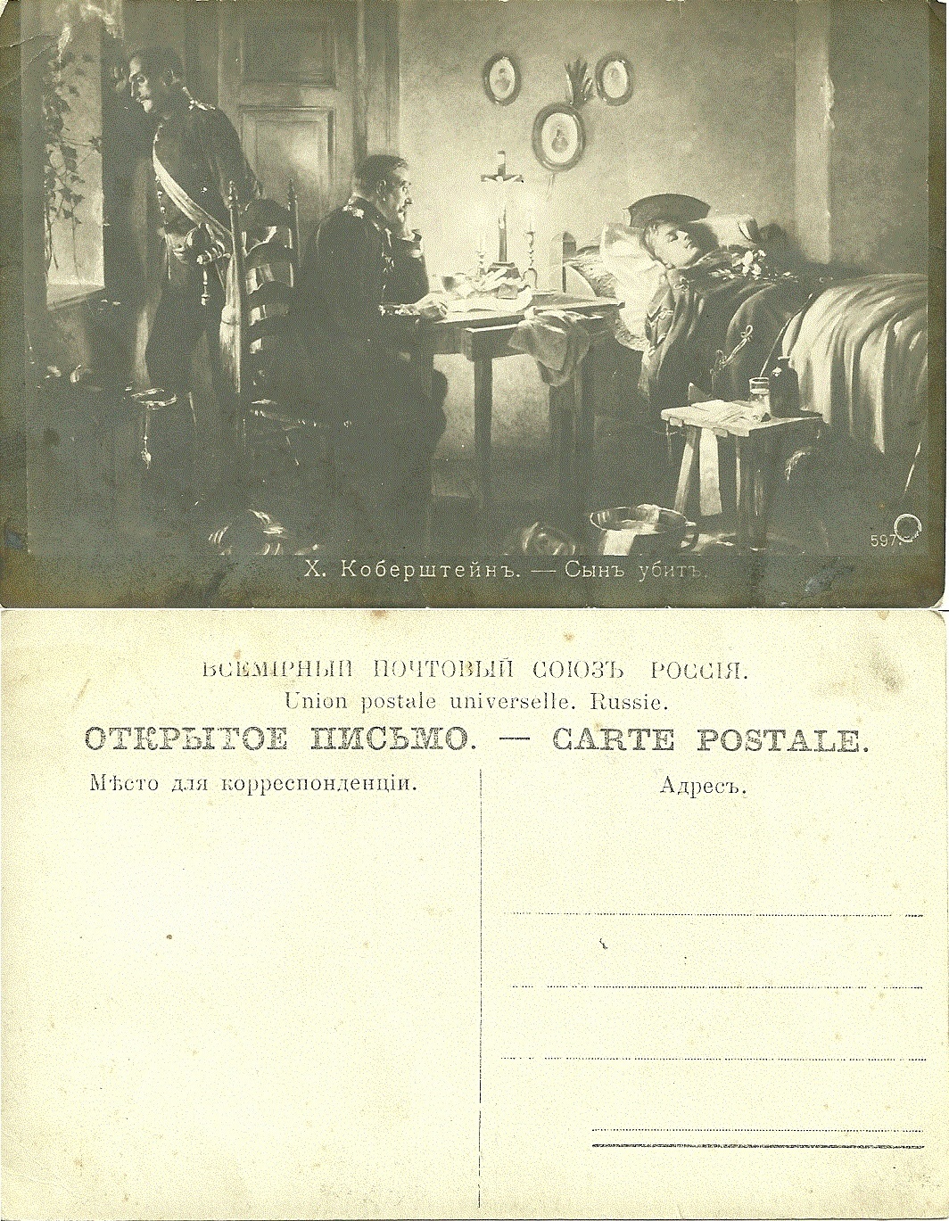 WAR Death of Son by KOBERSTEIN vintage russian postcard: