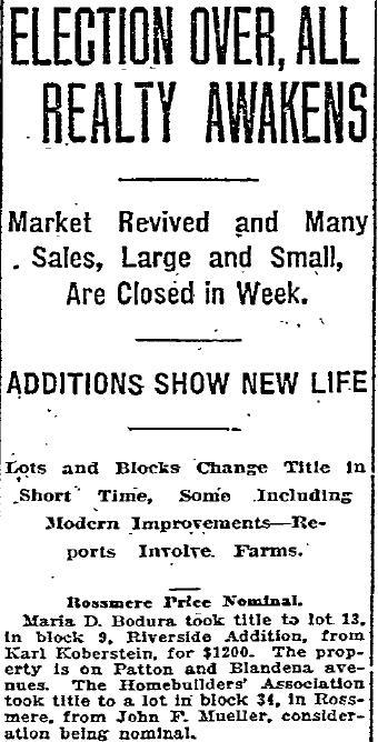 Election over, All Realty Awakens. Market Revived and Many Sales, Large and Small, Are Closed in Week (News Article)
