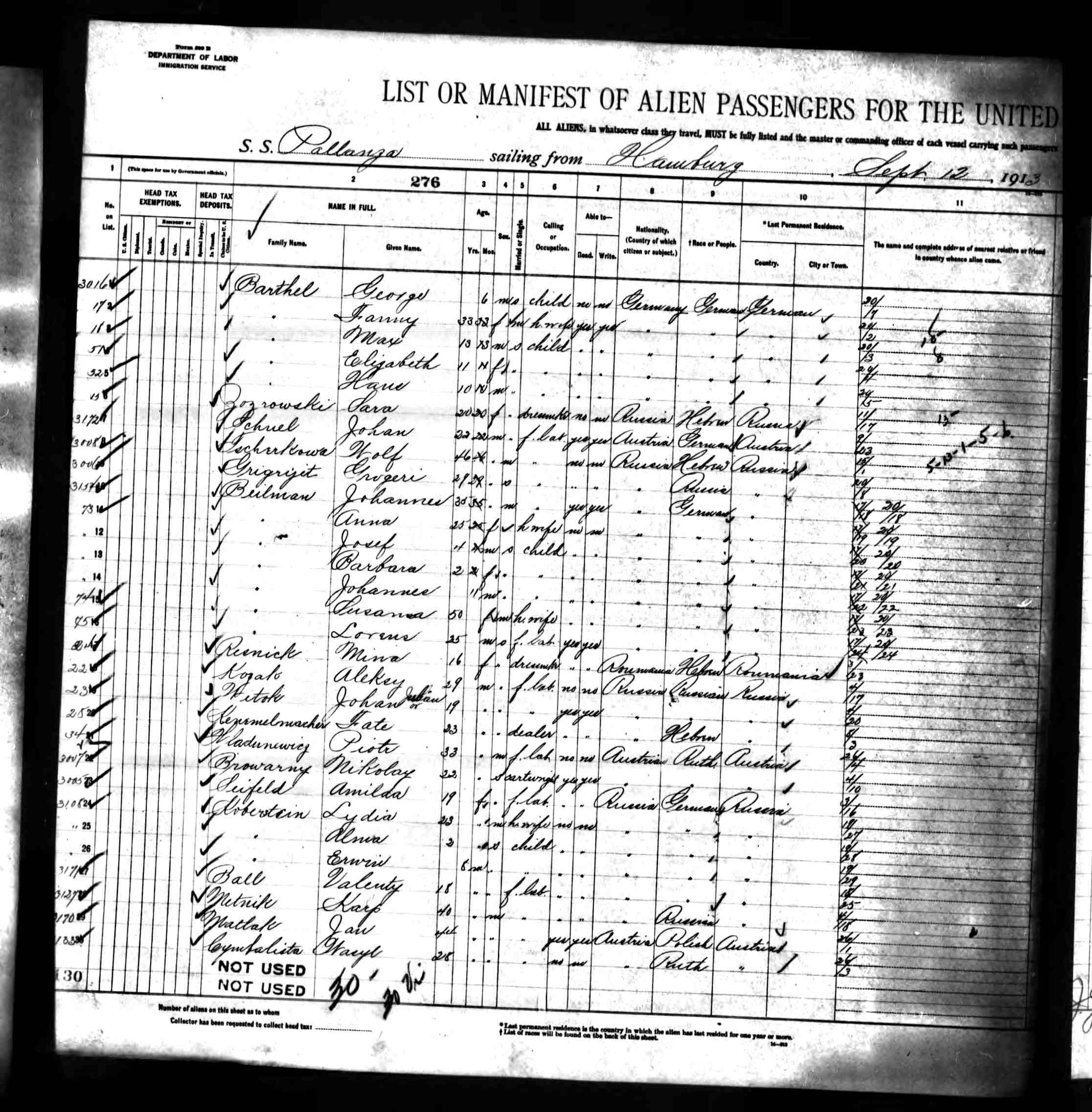 Depart: Hamburg 12 September, 1913