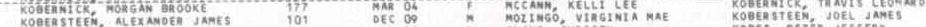 | Kobersteen, Alexander James | 101 (Galvanston) | 9 Dec 1999 | Male | Mozingo, Virginia Mae | Kobersteen, Joel James |