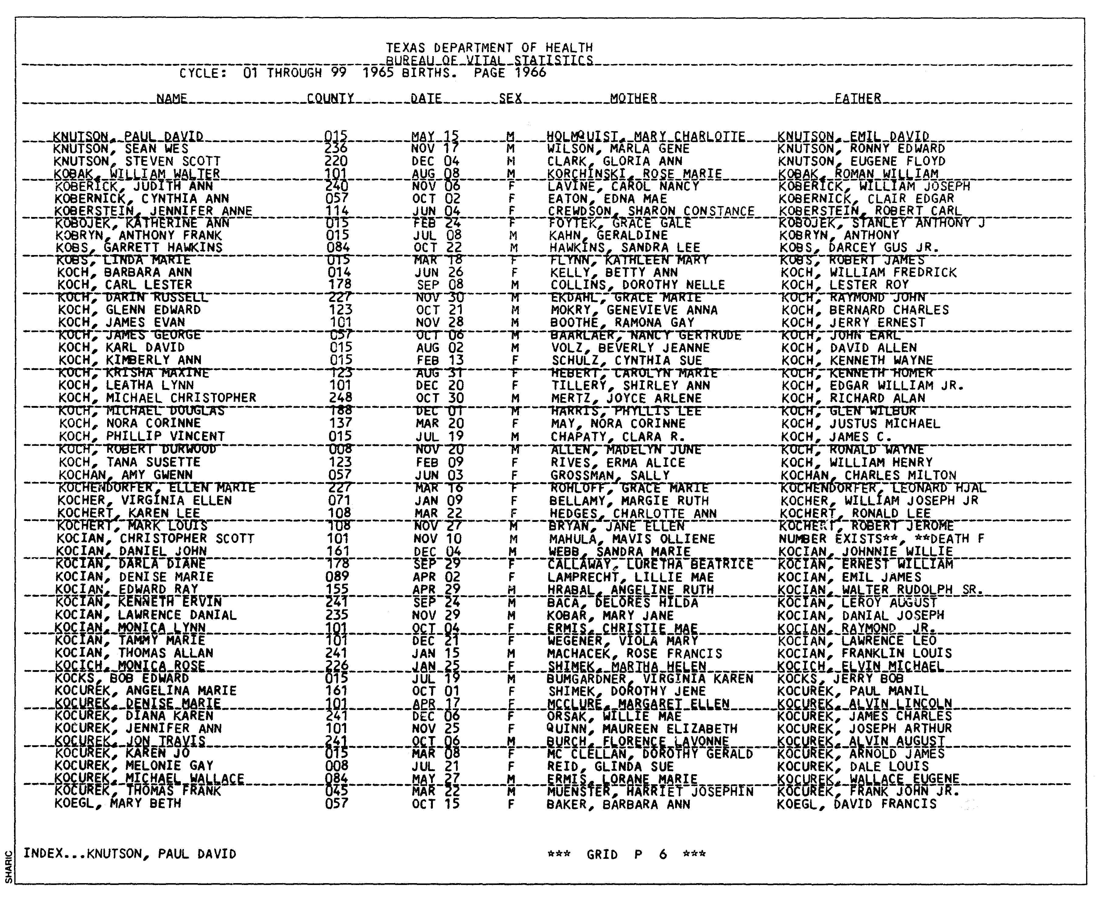 1Texas Birth Index, 1903-1997, ancestry.com. "Name: Jennifer Anne Koberstein