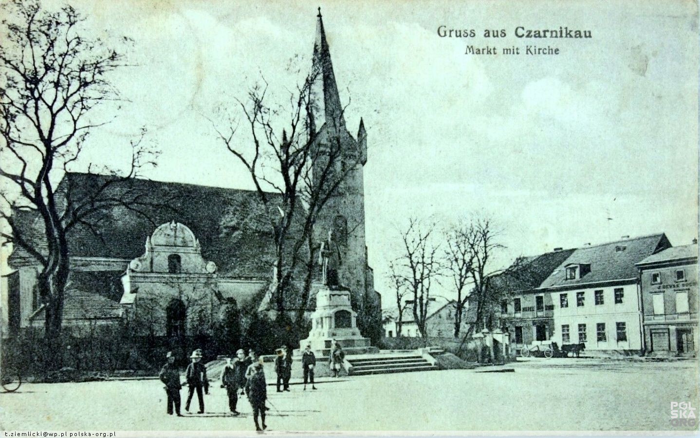Czarnkow Market 1925 Postcard -------------------------------------------- anc Church in the market