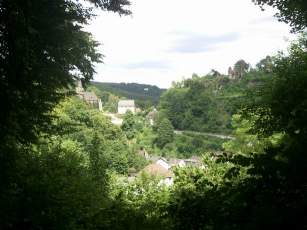Chapel and ruins of the Isenburgs Chapel Hausenburg in Isenburg The Hausenborn reference is regarding a chapel dedicated to St. Mary and St. Servatius within the jurisdiction of the Bishops of Trier, that was built with money from the Lords of Isenburg, a very prominent german family. This was in 1441. However, in 1442 it says that "1442(11. Mai) verkauft Katharina von Koberstein den Baumeistern, Momparn (= Vertreter des Stifters/Inhabers) und Geschworenen der Kapelle Hausenborn, Philipp von Caan (Kane), Johann Kaillarde und Friedrich Klockner, Schöffe zu Isenburg, ihren Hof zu Oberengers mit allem Zubehör, für 350 schwere Oberländ. Gulden, zum Bau der Kapelle Unserer Lieben Frau zu Hausenborn" Which means that Katarina von Koberstein sold her house and belongings on Oberengers the 11th of May 1442 for 350 heavy golden coins, to the master Builder Philip von Caan, Johan Kaillarde and Friedrich Klockner, (the three of Them occupied in the hausenborn-isenburg project), "for the construction of The Chapel of our beloved Lady of Hausenborn". So I don't understand whether she sold the house and gave them the money Or perhaps gave the house with a given value of 350 to the gentlemen so that they would administrate the house/lands and invest the benefit in the construction. However the persona is well described, and she is indeed a noble lady if mentioned this way as a lady with powers to administrate her own house. The location is given in this text. At the local exit of Isenburg, toward Bendorf Sayn, not far of the point, where Iser and Saynbach unite, a steep path leads uphill on the right side. After a going time of approx.. 20 minutes meets one one in the forest church ruin lain in the middle. It concerns the former barrier travel chapel of "our beloved Lady of Hausenborn". The name Hausenborn is derived from "house at the fount". In direct proximity a source of water rises from the church ruin. (Note: these directions are coming from the south to the north towards Isenburg, also the Rhine river is just south of Bendorf) Here is a map from Isenburg to Obererbach, Koberstein Estate