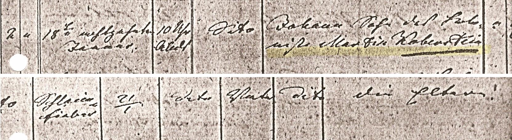 1Kirchenbuch, Taufen 1842-1893 Evangelische Kirche Langendorf (Kr. Strasburg) , LDS SLC FHL Int'l Microfilm, 245330. Poland, Olsztyn, Brynsk-Kolonia (Dzialdowo) - Church records. "Martin Koberstein son of Ludwig Koberstein and Caroline born 8 Oct 1841." Image.