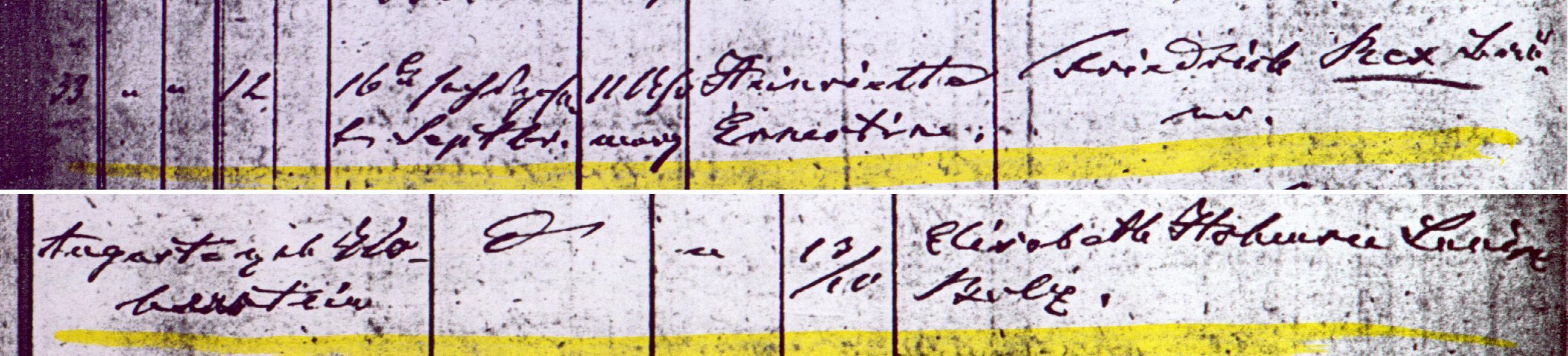 2Langendorf Kirchenbuch, Taufen 1842-1893 . "Heinriette Ernestine Warnke christening 1862 - , Strasburg, West Prussia." Researched - 7 Oct 2002. Image.
